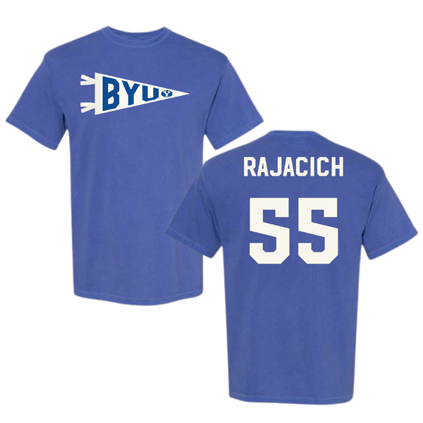 Brigham Young University Baseball Blue Pennant Comfort Colors Tee - #55 Seth Rajacich