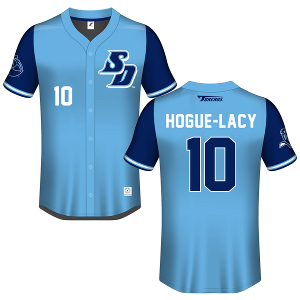 University of San Diego Blue Button-Down Jersey - #10 Shawnese Hogue-Lacy
