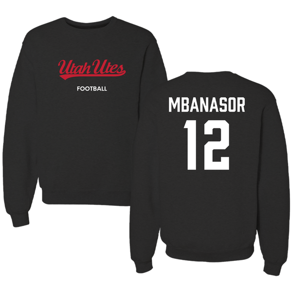University of Utah Football Black Crewneck - #12 Sidney Mbanasor