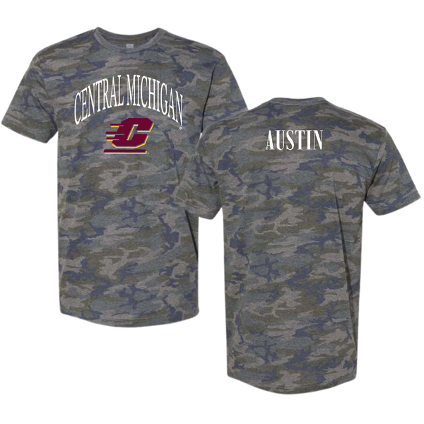 Central Michigan University TF and XC Vintage Camo Tee - Sky Austin