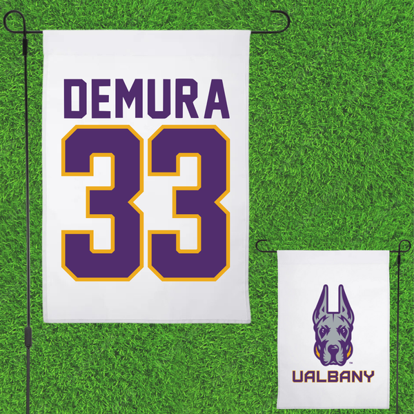 University at Albany Soccer White Garden Flag - #33 Sophia DeMura