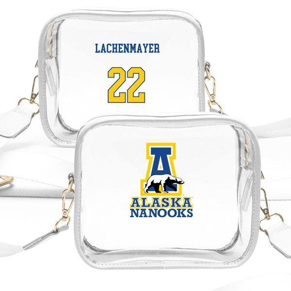 University of Alaska Fairbanks Basketball (W) White Clear Stadium Bag - #22 Sophia Lachenmayer