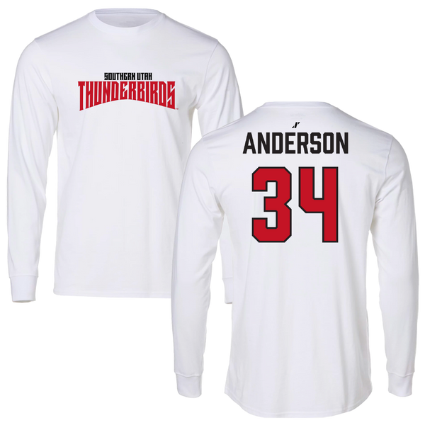 Southern Utah University Basketball (W) White Classic Performance Long Sleeve - #34 Denver Anderson