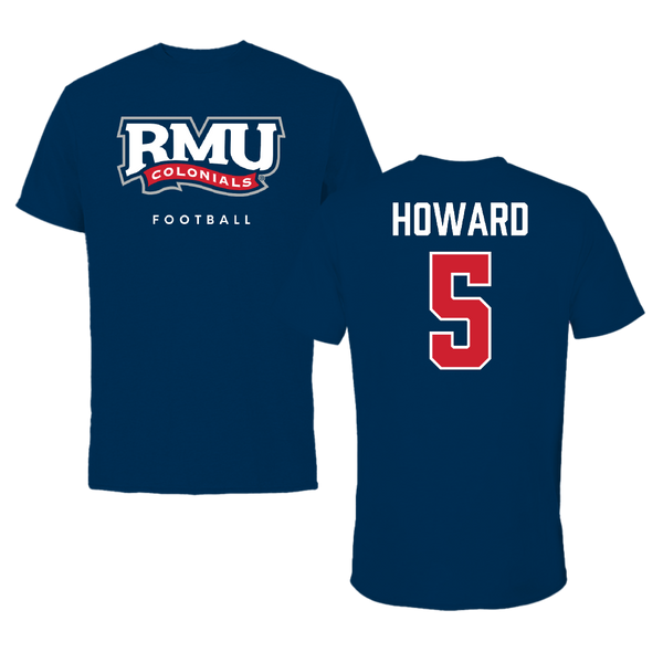 Robert Morris University Football Navy Tee - #5 Tahseen Howard