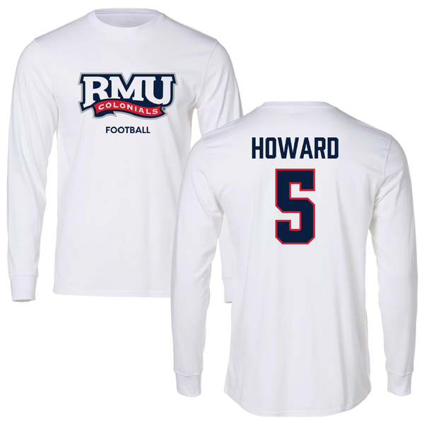 Robert Morris University Football White Long Sleeve - #5 Tahseen Howard