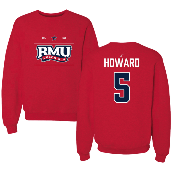 Robert Morris University Football Red General Crewneck - #5 Tahseen Howard