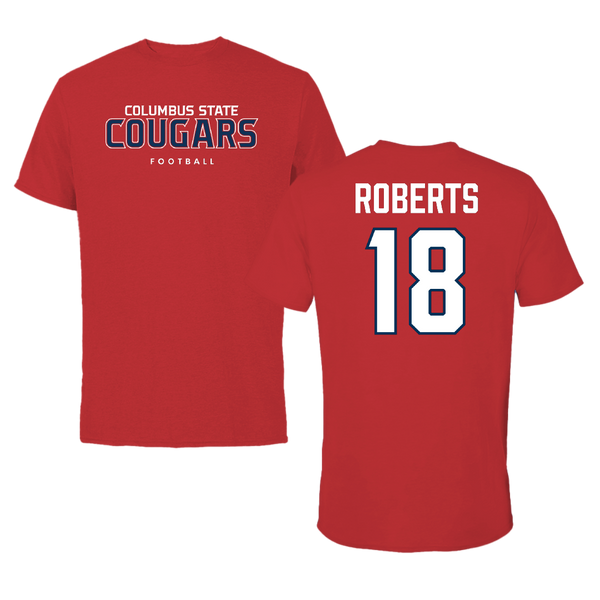 Columbus State University Football Red Tee - #18 Tamari Roberts