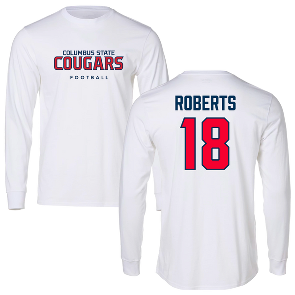 Columbus State University Football White Long Sleeve - #18 Tamari Roberts