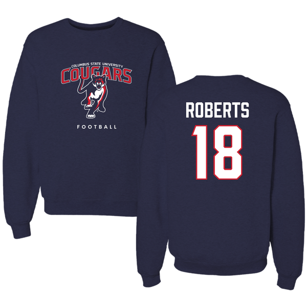 Columbus State University Football Navy Mascot Crewneck - #18 Tamari Roberts