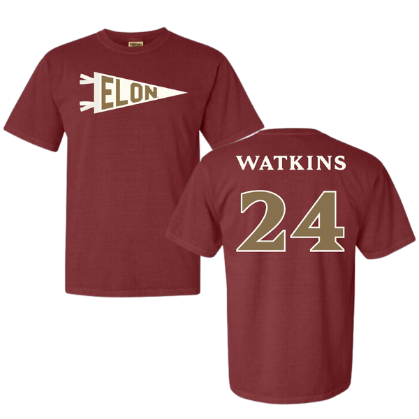 Elon University Basketball (W) Maroon Pennant Comfort Colors Tee - #24 Tamia Watkins