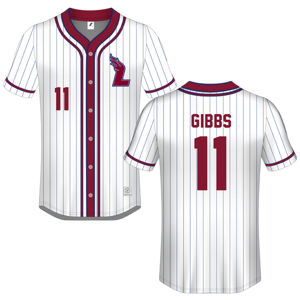 Lee University White Pinstripe Button-Down Jersey - #11 Taryn Gibbs