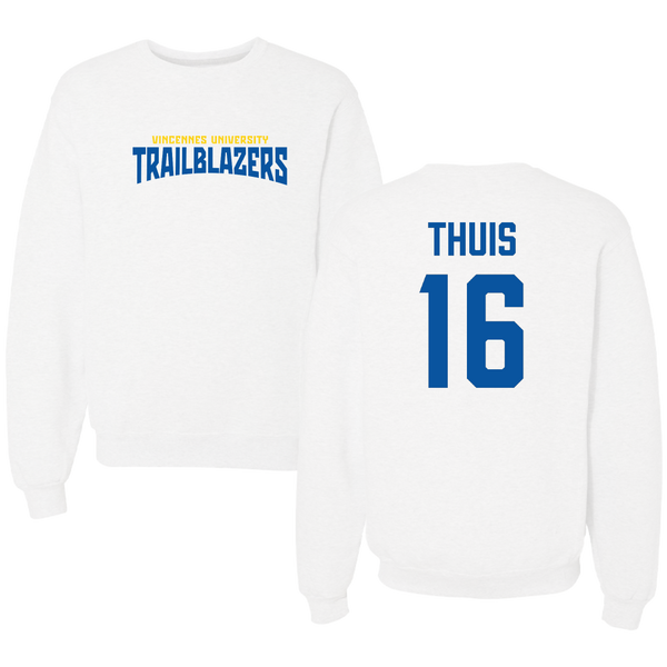 Vincennes University Volleyball (W) White Classic Crewneck - #16 Taryn Thuis