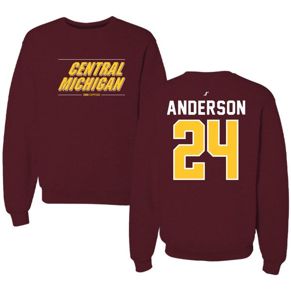 Central Michigan University Basketball Maroon General Crewneck - #24 Taylor Anderson