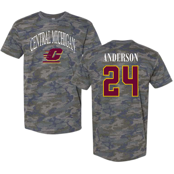 Central Michigan University Basketball Vintage Camo Tee - #24 Taylor Anderson