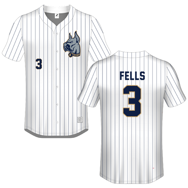 Bluefield State University White Pinstripe Button-Down Jersey - #3 Taylor Fells