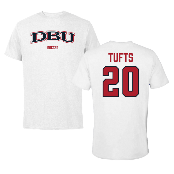 Dallas Baptist University Soccer (W) White Tee - #20 Taylor Tufts
