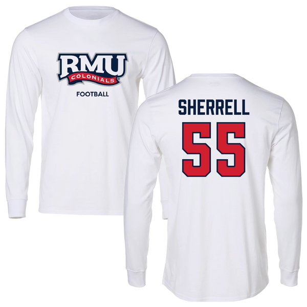 Robert Morris University Football White Long Sleeve - #55 Tayvon Sherrell