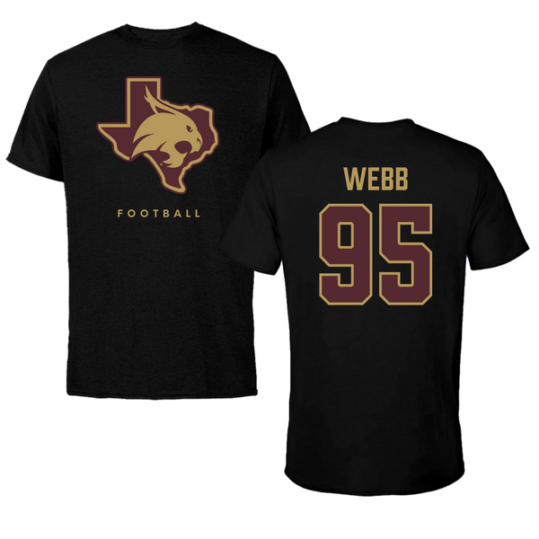 Texas State University Football Black Performance Tee - #95 Terry Webb