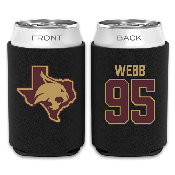 Texas State University Football Black Can Cooler - #95 Terry Webb