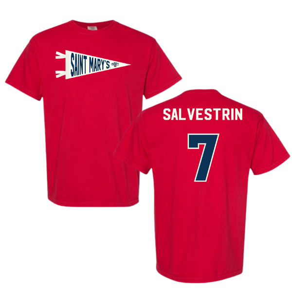 Saint Mary's College of California Soccer Red Pennant Comfort Colors Tee - #7 Tessa Salvestrin
