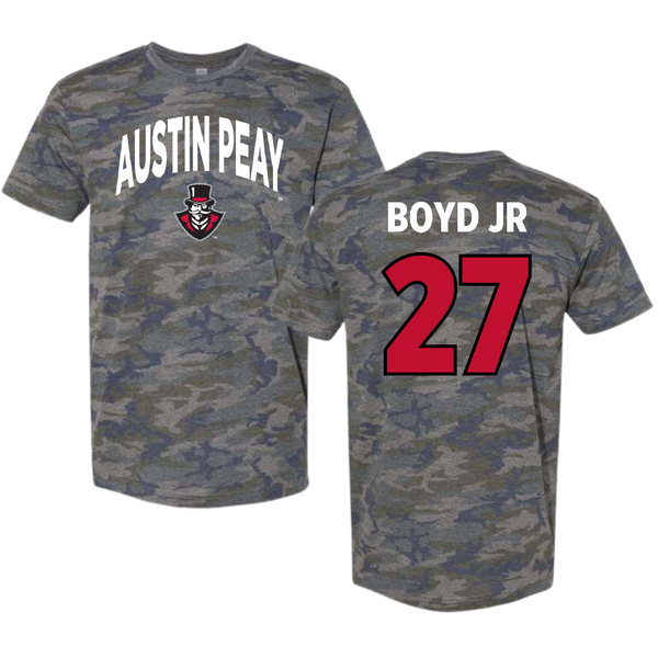 Austin Peay State University Football Vintage Camo Tee - #27 Tetoe Boyd Jr