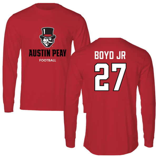 Austin Peay State University Football Red General Long Sleeve - #27 Tetoe Boyd Jr