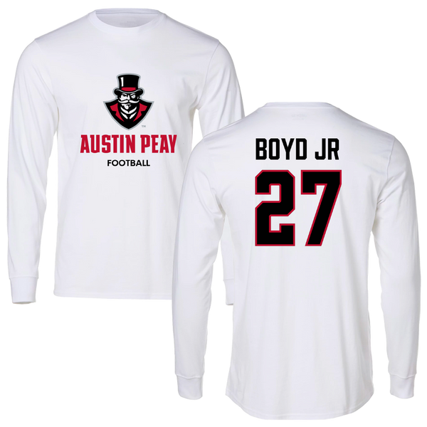 Austin Peay State University Football White Long Sleeve - #27 Tetoe Boyd Jr