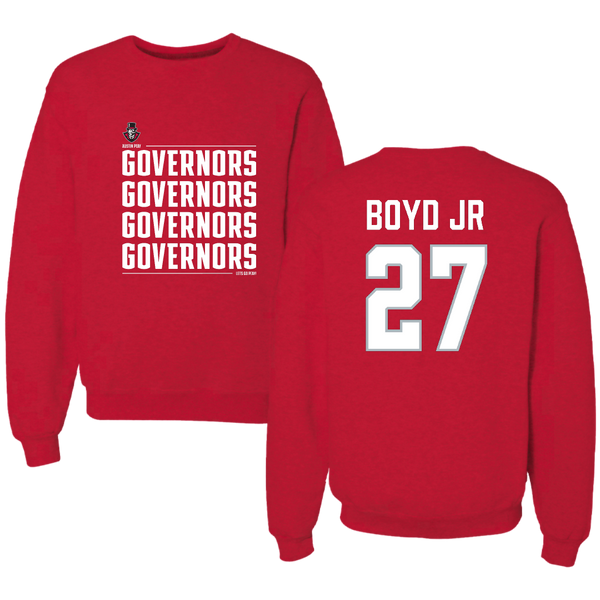 Austin Peay State University Football Red General Crewneck - #27 Tetoe Boyd Jr