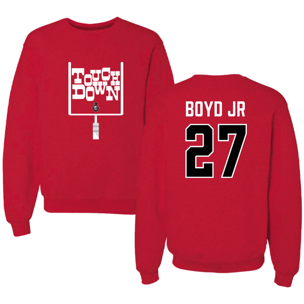 Austin Peay State University Football Red Touchdown Crewneck - #27 Tetoe Boyd Jr