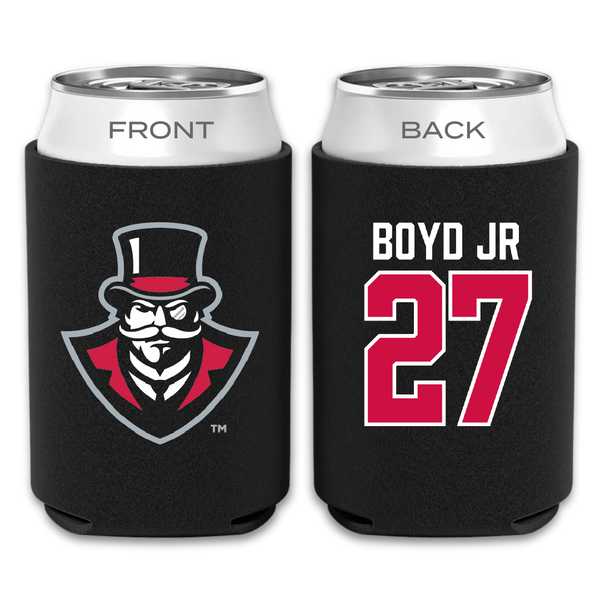 Austin Peay State University Football Black Can Cooler - #27 Tetoe Boyd Jr