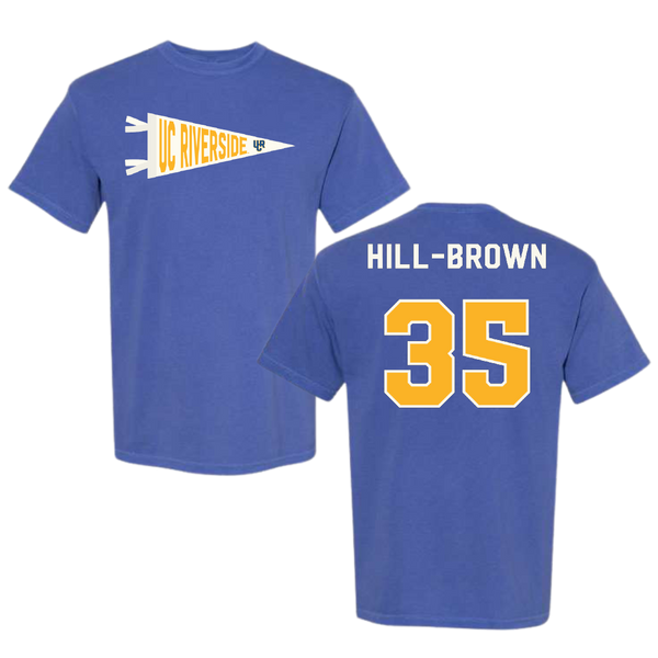 University of California-Riverside Basketball Blue Pennant Comfort Colors Tee - #35 Tiairra Hill-Brown
