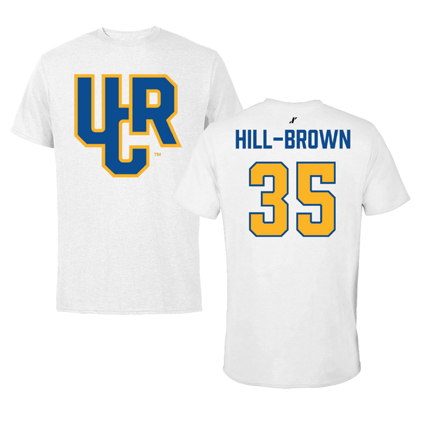 University of California-Riverside Basketball White Performance Tee - #35 Tiairra Hill-Brown
