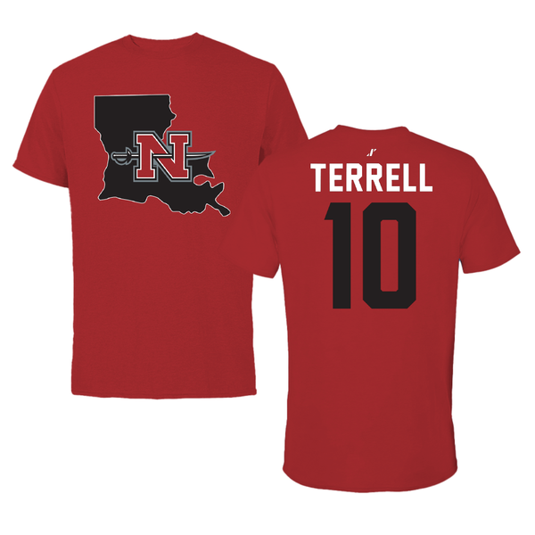 Nicholls State University Volleyball Canvas Red State Tee - #10 Tierney Terrell
