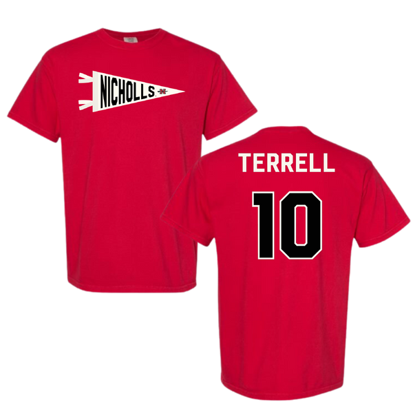 Nicholls State University Volleyball Red Pennant Comfort Colors Tee - #10 Tierney Terrell