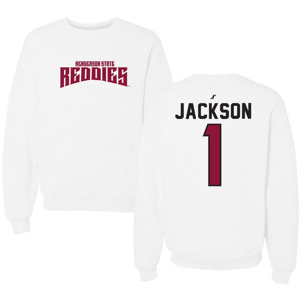 Henderson State University Football White Classic Crewneck - #1 Timieone Jackson