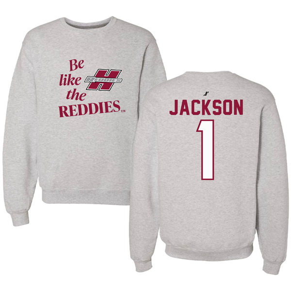 Henderson State University Football Light Gray Be Like Us Crewneck - #1 Timieone Jackson