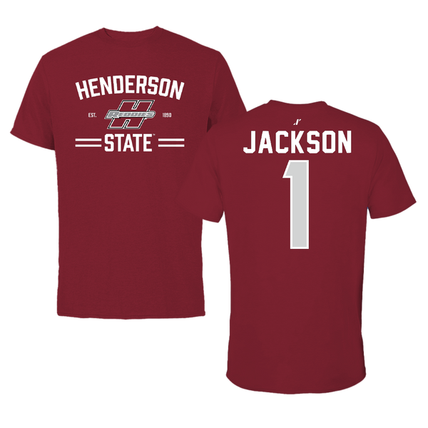 Henderson State University Football Cardinal Tee - #1 Timieone Jackson