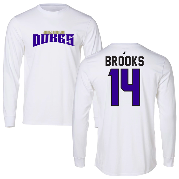 James Madison University Baseball White Classic Long Sleeve - #14 TJ Brooks