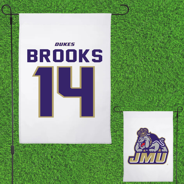 James Madison University Baseball White Garden Flag - #14 TJ Brooks