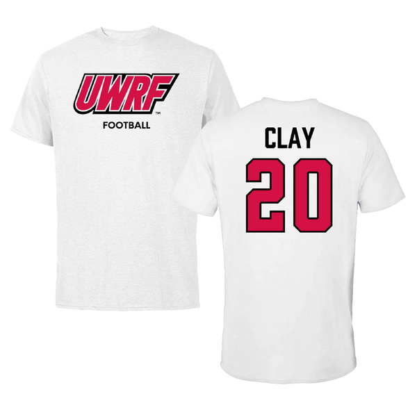 University of Wisconsin-River Falls Football White Block Tee - #20 TJ Clay