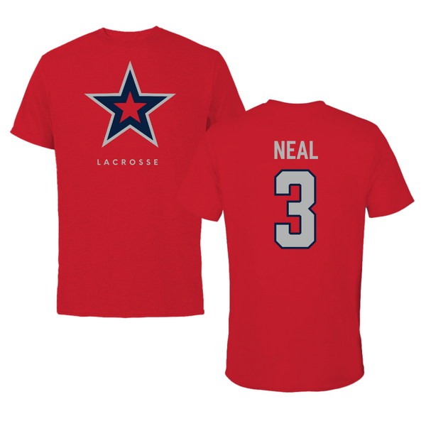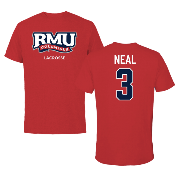 Robert Morris University Lacrosse Red General Tee - #3 Torin Neal