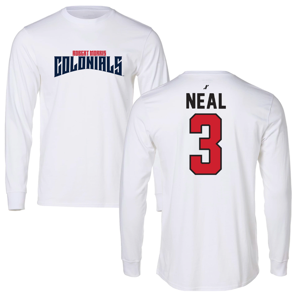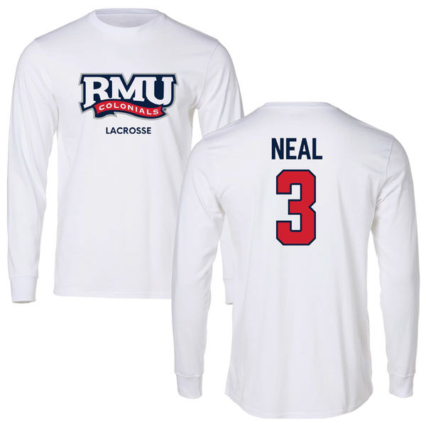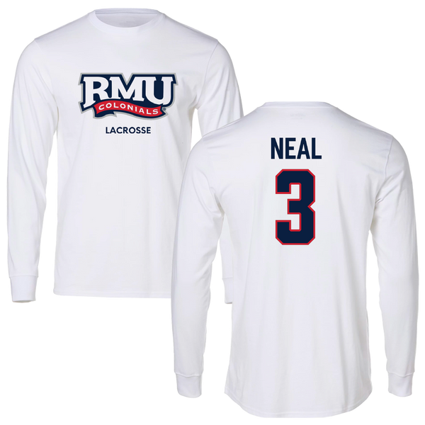 Robert Morris University Lacrosse (M) White Long Sleeve - #3 Torin Neal
