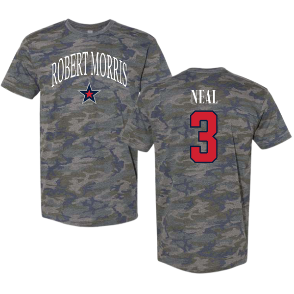 Robert Morris University Lacrosse Vintage Camo Tee - #3 Torin Neal