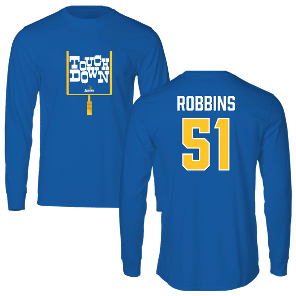 Texas A&M University-Kingsville Football Blue Touchdown Long Sleeve - #51 Tre Robbins