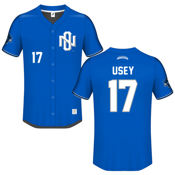 University of New Orleans Blue Button-Down Jersey - #17 Trey Usey