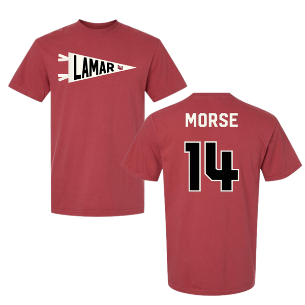 Lamar University Baseball Canvas Red Pennant Comfort Colors Tee - #14 Trhea Morse