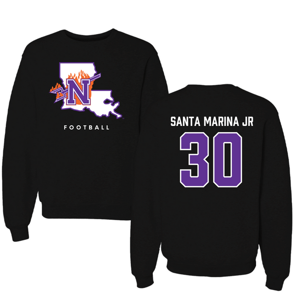 Northwestern State University Football Black Block Crewneck - #30 Troy Santa Marina Jr
