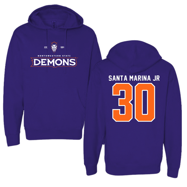 Northwestern State University Football Purple Hoodie - #30 Troy Santa Marina Jr
