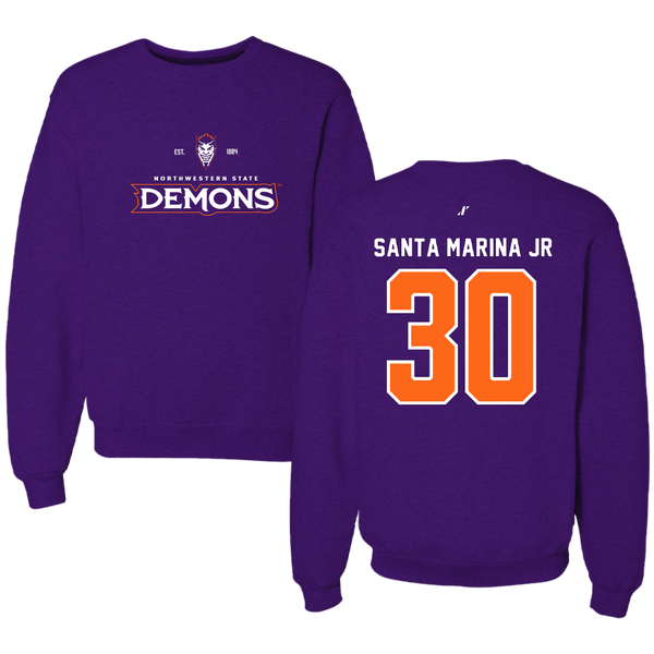 Northwestern State University Football Purple General Crewneck - #30 Troy Santa Marina Jr