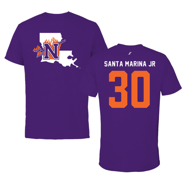 Northwestern State University Football Purple State Tee - #30 Troy Santa Marina Jr